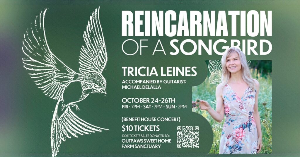 Friday October 24, Saturday October 25, Sunday October 26 (Matinee): A special set of house concerts with jazz vocalist Tricia Leines and guitarist Michael DeLalla