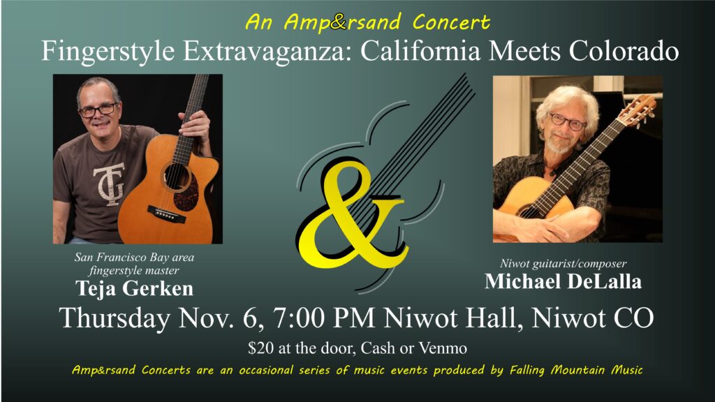 I’m excited to be bringing renowned guitar master Teja Gerken to Niwot. This one promises to be special; I hope you can make it.